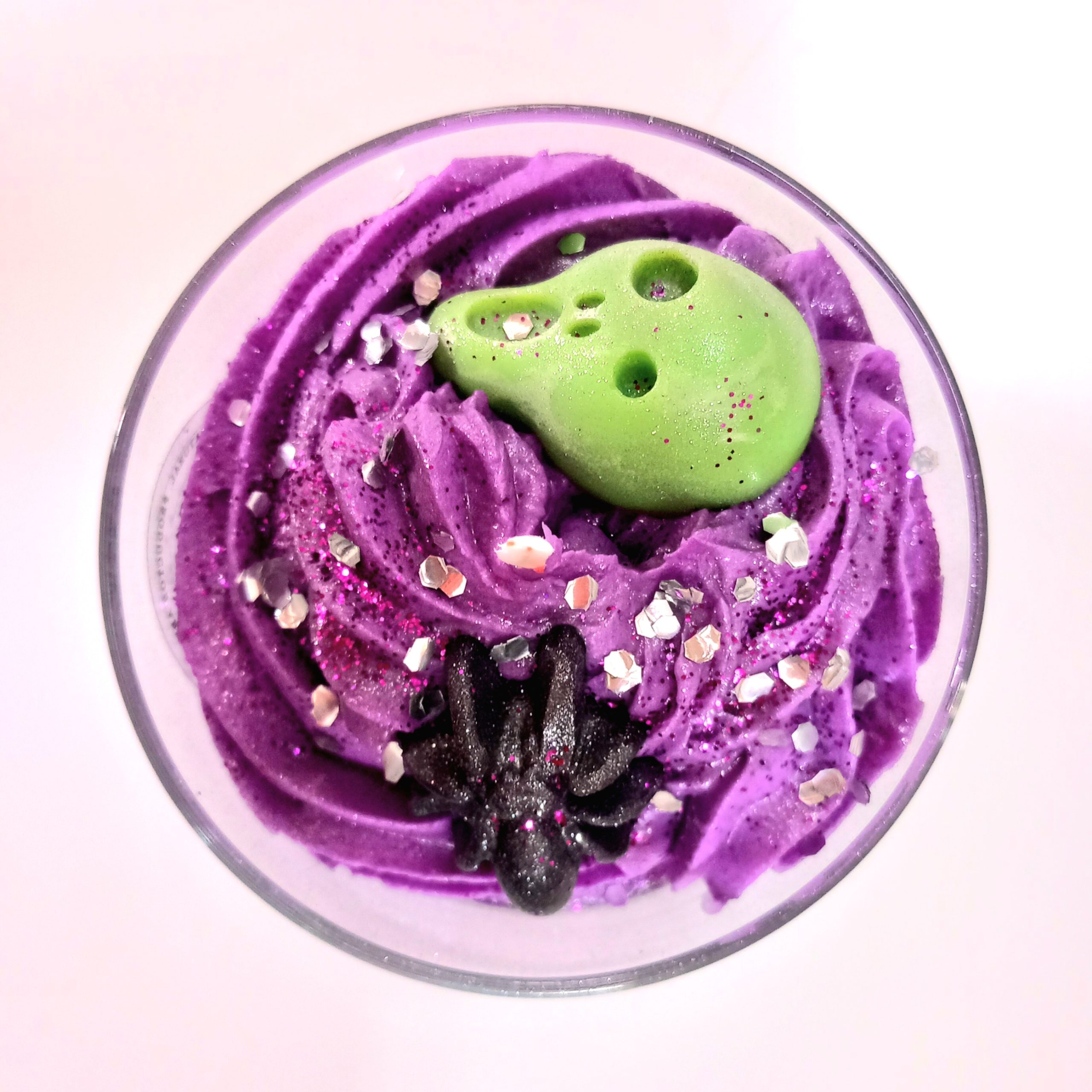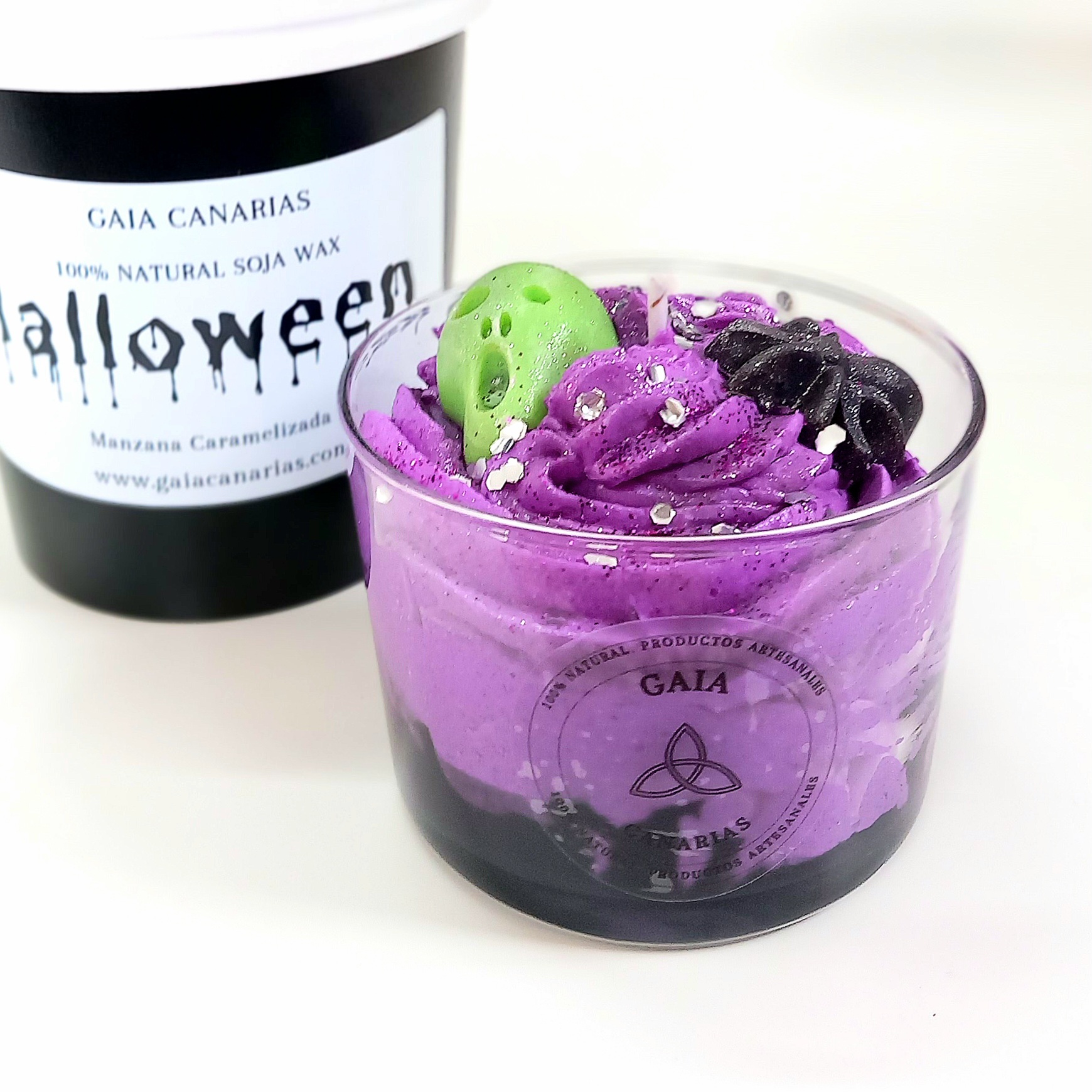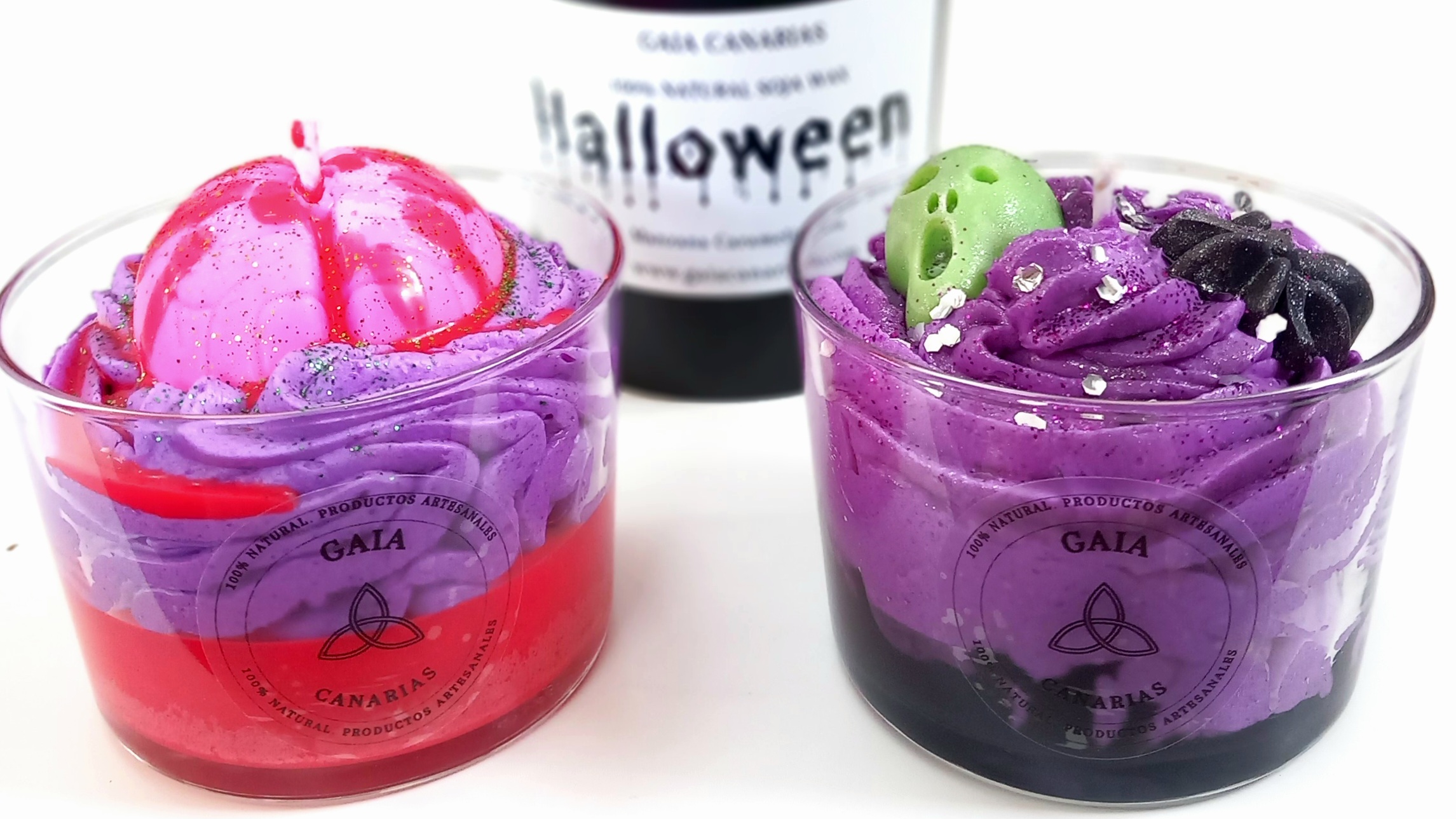 La Vela de Halloween Araña es una vela vegetal divertida con diseño en forma de postre de arañas y espectros para tod@s esas brujas y brujos expertos en pociones que encienden sus calderos en la noche de Halloween.
